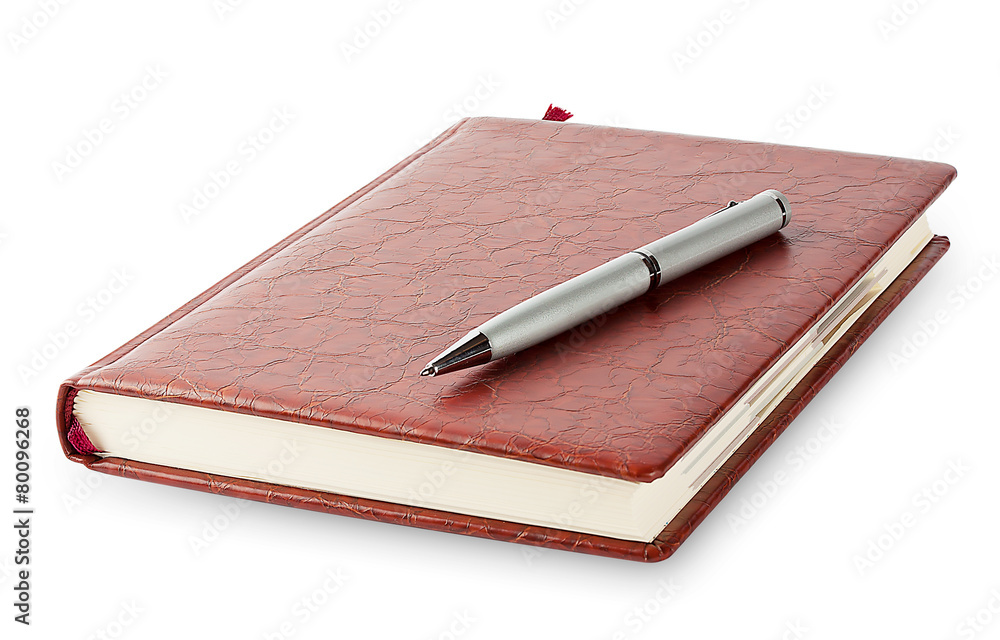 Diary with a pen lying on it
