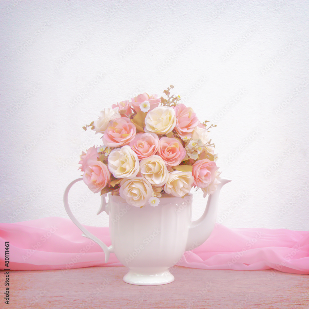 Romantic a bouquet of roses on wooden table, Soft Pastel Tone