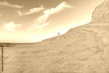 la silhouette d'un homme au bord d'une colline de couleur blanche en bord de Mer au coucher de soleil