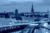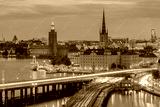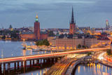 Aerial night view of Riddarholmen, Gamla Stan, in Old Town of Stockholm, capital of Sweden