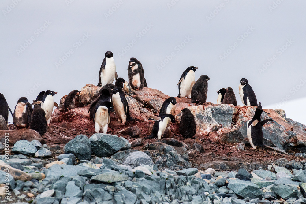 Impression of the Adelie Penguin - Pygoscelis adeliae- colony, near the fish islands, on the Antarctic Peninsula
