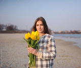 the girl with a tulip is situated on the bank of the river