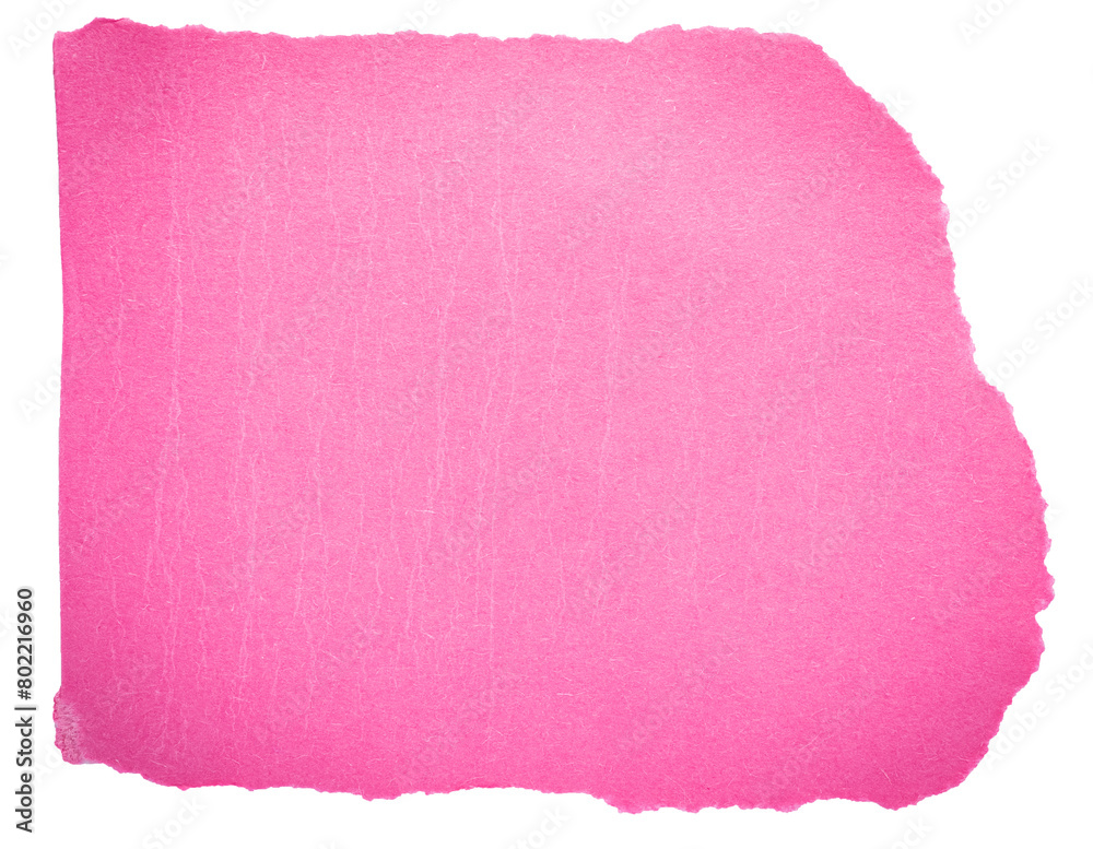 Isolated cut out torn single piece of blank pink paper note cardboard with texture and copy space for text on white or transparent background