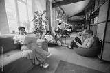 Creative business hub. Young multi ethnic people gathering in modern office for work and study, finishing own tasks in cozy but professional atmosphere. Business and education, co-working space