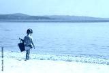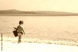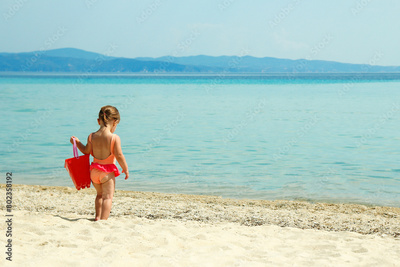 happy child at sea in greece plays in nature