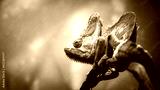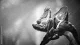 Cricket hiding on the head of a Veiled Chameleon