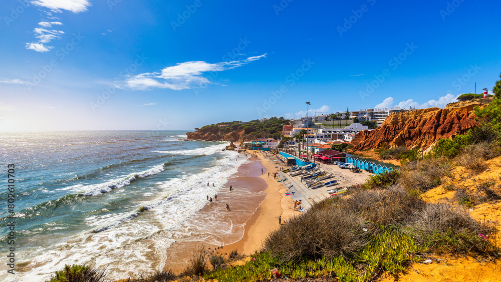 Amazing view of town Olhos de Agua in Albufeira, Algarve, Portugal. Coastal view of town Olhos de Agua, Albufeira area, Algarve, Portugal.