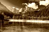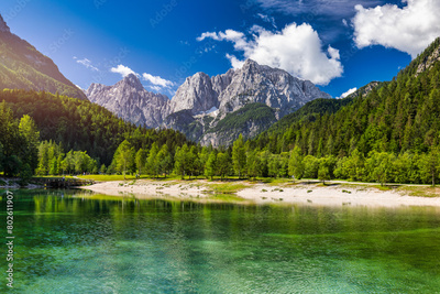Great nature scenery in Slovenian Alps. Incredible summer landscape on Jasna lake. Triglav national park. Kranjska Gora, Slovenia. Mountain lake Jasna in Krajsnka Gora, Slovenia.