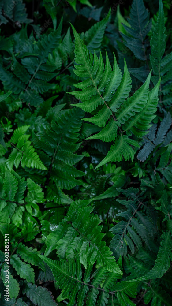 Tropical green leaves background, Nature Wall Lush Foliage Leaf Texture, Vertical image.
