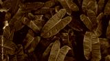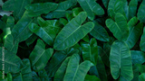 closeup nature view of green leaf and palms background. Flat lay, dark nature concept, tropical leaf