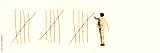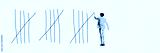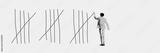 Young man crossing lines, symbolizing the ability to overcome barriers and adjust to situation. Contemporary art collage. Psychology, inner world, mental health, feelings. Conceptual design. Line art