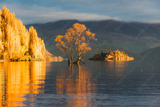 Sunrise glowing on Wanaka tree or Willow tree with autumn forest at Lake Wanaka, New Zealand