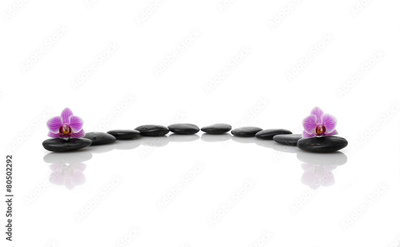 Two orchid with set of black stones