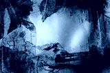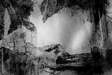 Black and white grain grunge paper collage frame wall. Abstract texture copy space background.