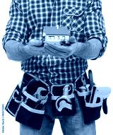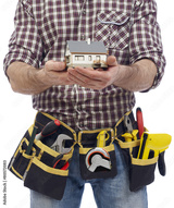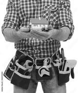 Carpenter showing a house model