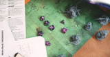 Miniatures and dice for adventure story on battle map role playing tabletop game and board games hobby