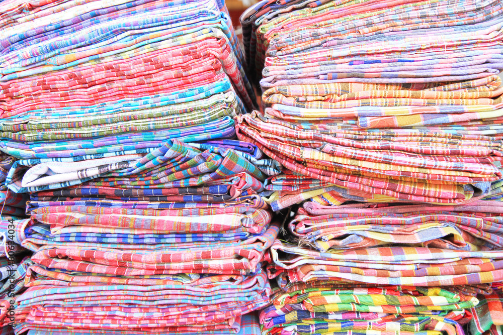 Stack of traditional thai fabric cloth