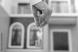 lease, rental and selling home. Real estate agent manager holding key for new owner. rent house, Sales, loan credit financial, insurance, Seller, dealer, installment, buy, sell, move in..