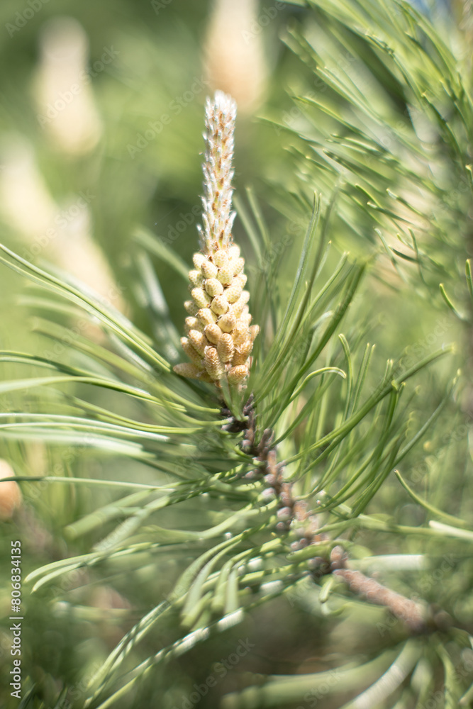 Pylenie sosny, okres kwitnienia drzew iglastych, alergia na pyłki.