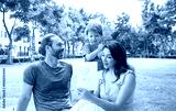 Happy mother day. Children boy congratulating mum and giving his postcard. Happy family father, mother and son in park.