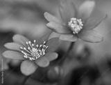 Blooming blue iliverworts n the spring forest. Macro photo.