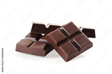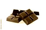 Dark chocolate pieces isolated on white background