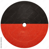 vinyl vintage black and red label, realistic photography isolated png on transparent background for graphic design