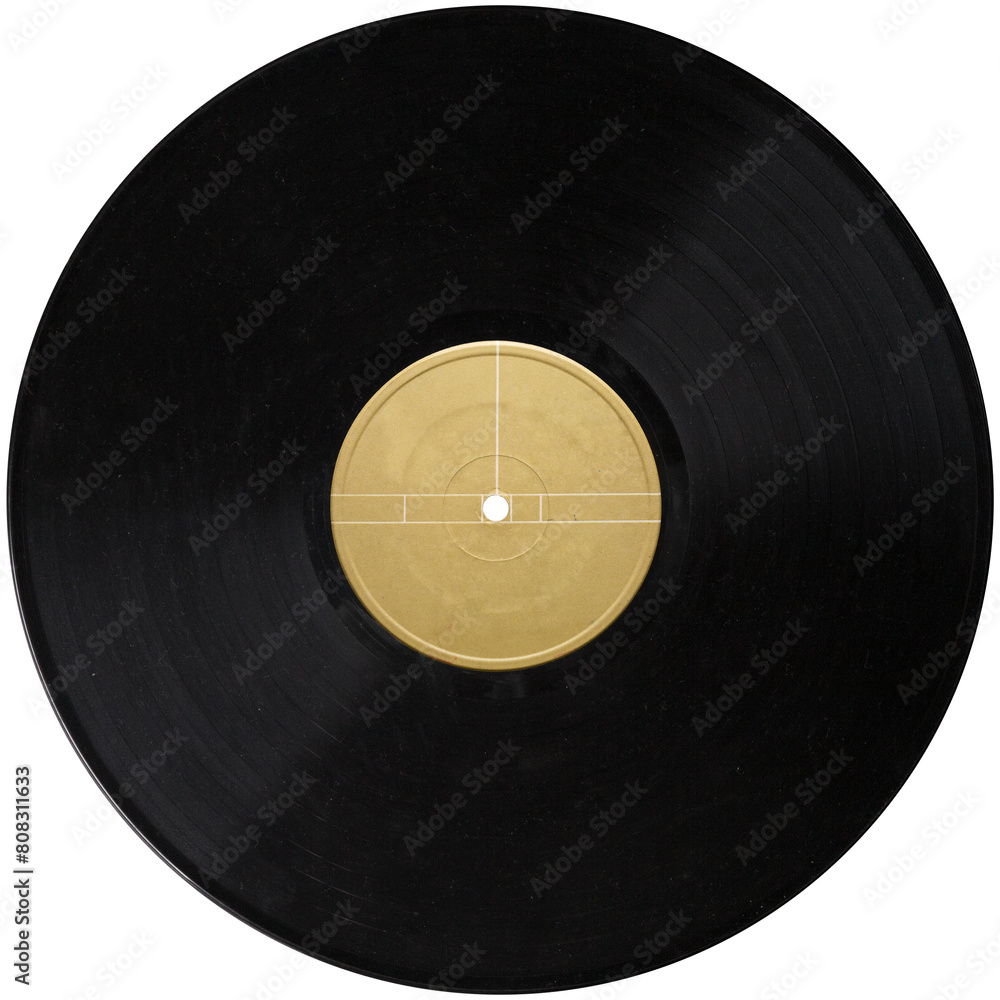 vinyl record gold label, realistic photography isolated png on transparent background for graphic design