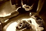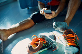 Man taking off dirty shoes at home after workout