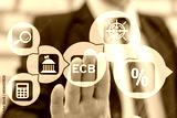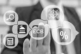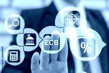 Business man working on virtual touch screen presses acronym: ECB. ECB European Central Bank business finance concept. ECB - prime component of Eurosystem and European System of Central Banks.