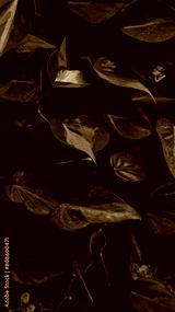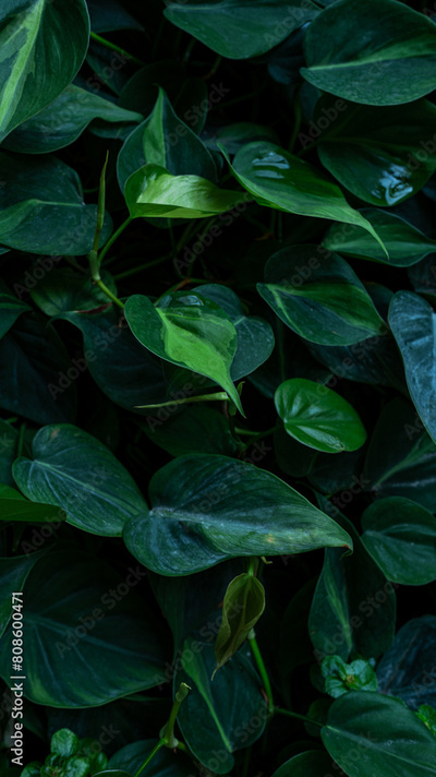 closeup nature view of green leaf and palms background. Flat lay, dark nature concept, Vertical image.