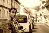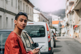 urban young man using phone on the street
