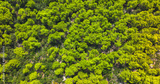 TOP DOWN: Flying over the lush green pine tree canopies covering Korcula island.