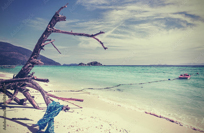 Retro vintage stylized picture of a beach, koh lipe, thailand.