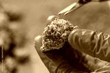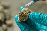 Hand trimming Buds of Cannabis in Drying Curing Cannabis flowers buds process Closeup with drying cola pistil trichomes all in buds. trimming by scissors for drying curing process Buds of Cannabis.