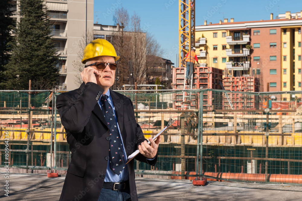 Ingegnere che controlla i lavori nel cantiere