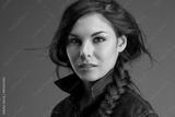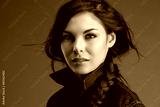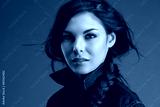 Attractive woman in a denim shirt with flying locks