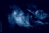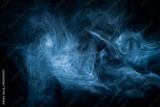 Blue fog haze on dark background. Abstract atmospheric smoke cloud. High quality photo