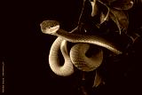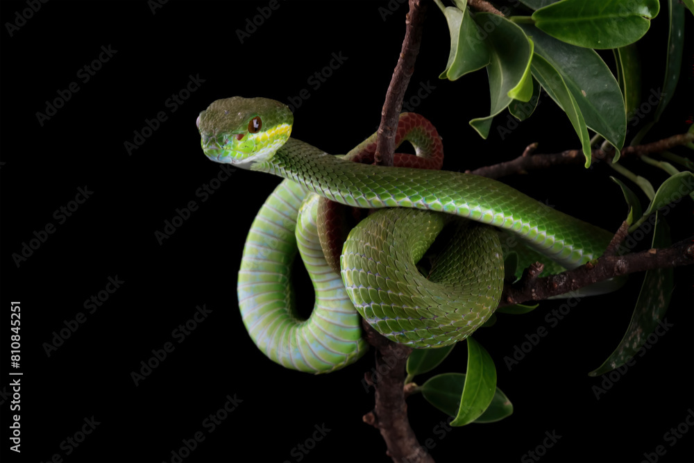 green viper snake on branch, venomous and poisonous snake