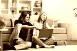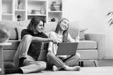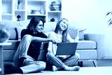Happy Couple Relaxing With Laptop At Home, Enjoying Time Together, Casual Lifestyle, Modern Living Room