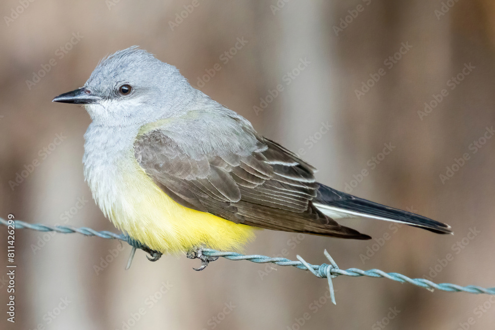 Western Kingbird foraging on barbed wire. Sierra Vista Open Space Preserve, Santa Clara County, California.