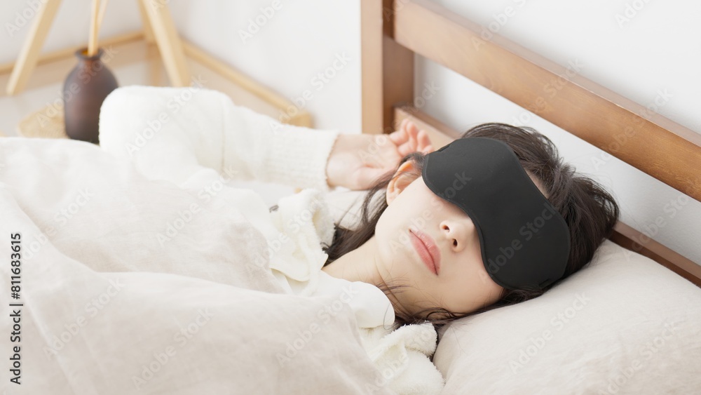 明るい部屋でアイマスクを付けて寝る女性