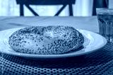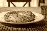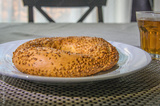 Bagel with sesame seeds on a plate close-up on a table in the room