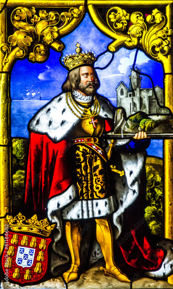 Sintra, Portugal - King Manuel First on vitrage window icon in P
