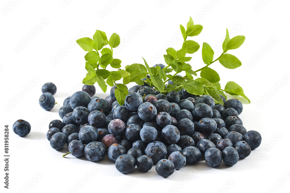 Fresh Blueberries with Green Leaves