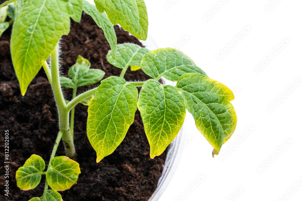 Tomato plants with signs of lack of microelements isolated on white
