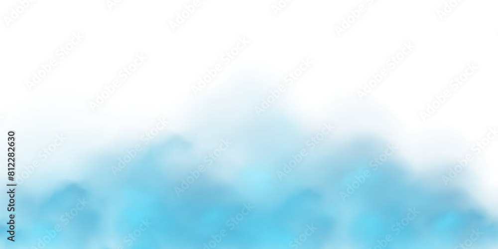 Blue turquoise smoke on white background. Blue smoke border on transparent background