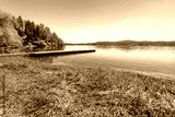 A small boat dock juts out into the shallow waters of Hauser Lake, in Hauser Lake, Idaho, a neighbor city and considered part of the general region Coeur d'Alene in North Idaho.