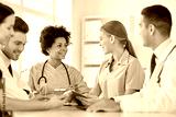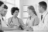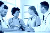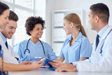 group of happy doctors meeting at hospital office