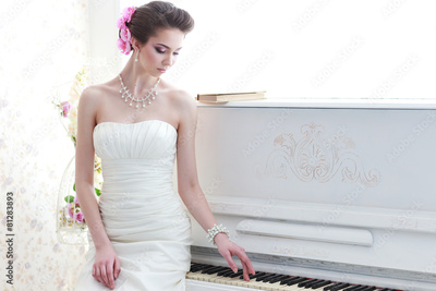 Portrait of beautiful bride. Wedding dress. Wedding decoration